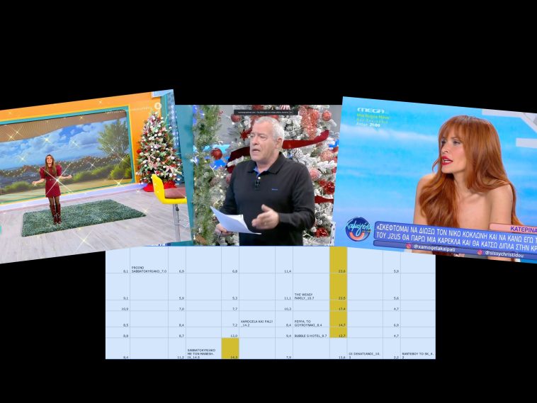 - Στα επιμέρους πρωτιά πήρε ο Μάνεσης που αφιέρωσε μεγάλο μέρος της εκπομπής του στην κακοκαιρία και ορθώς… στην δεύτερη θέση η Χρηστίδου… τρίτοι οι “Δεκατιανοί” στον Σκάϊ… τέταρτη η Τσολάκη και στον πάτο το “Open” που δεν υπάρχει περίπτωση να ανέβει με την σημερινή δομή της εκπομπής.