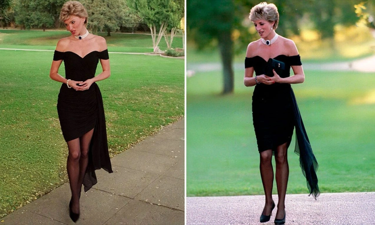 Η ίδια πόζαρε με μια απομίμηση του θρυλικού μαύρου φορέματος με το βαθύ ντεκολτέ που είχε επιλέξει η Lady D στις 29 Ιουνίου του 1994 για το φιλανθρωπικό δείπνο του «Vanity Fair» στη Serpentine Gallery και το οποίο αποτελούσε δημιουργία της Ελληνίδας σχεδιάστριας Χριστίνας Σταμπολιάν.