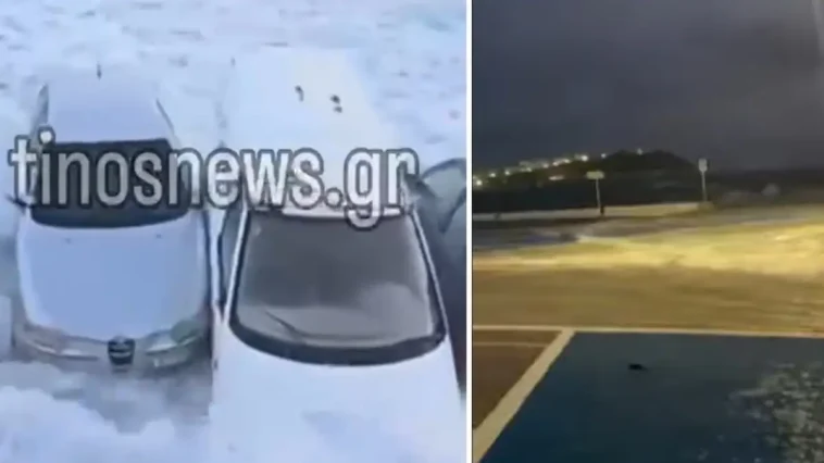 Σοβαρά προβλήματα προκάλεσε η έντονη κακοκαιρία και στην Τήνο. Ισχυρά κύματα εισέβαλαν στον χώρο στάθμευσης του λιμανιού και παρέσυραν σταθμευμένα αυτοκίνητα.