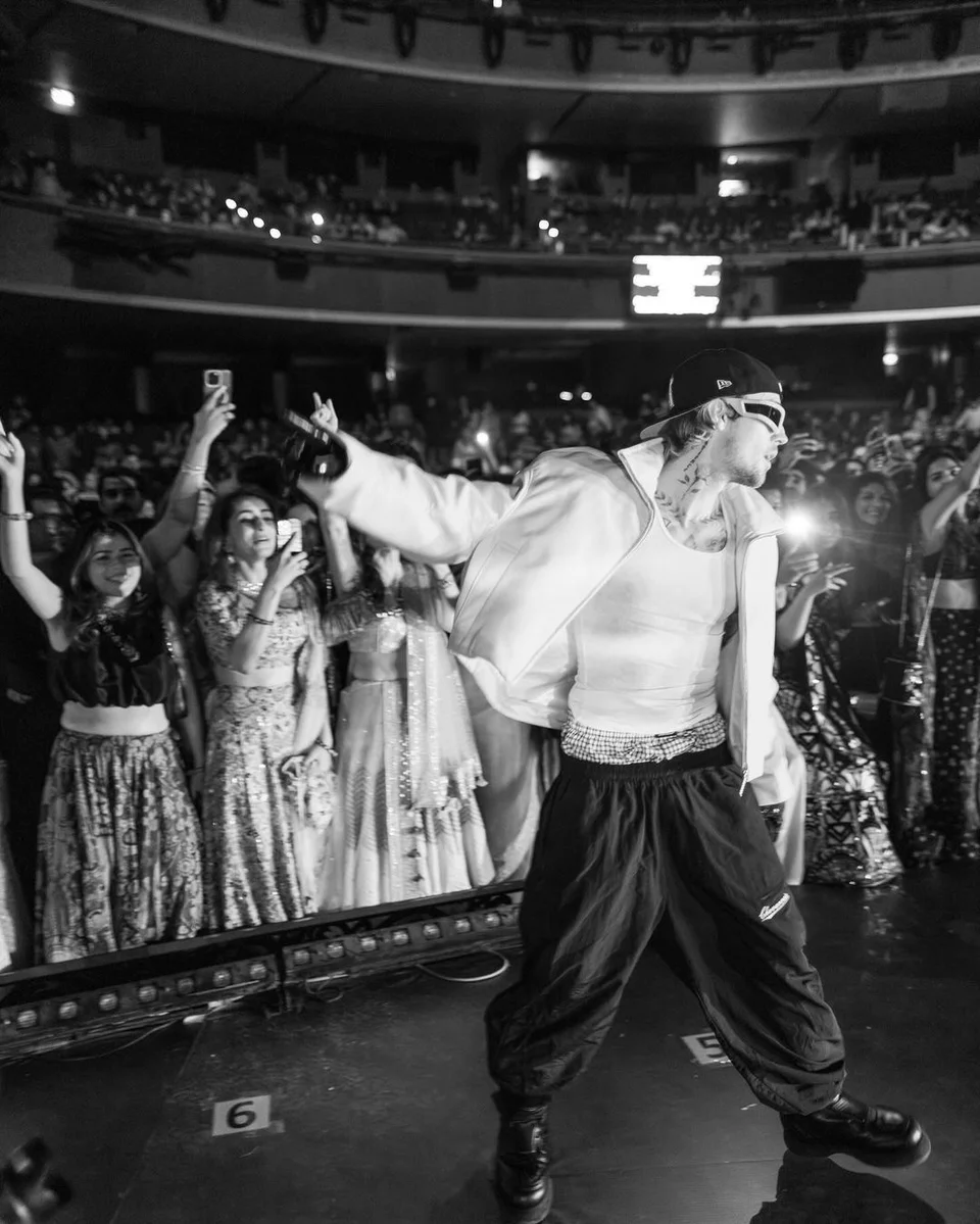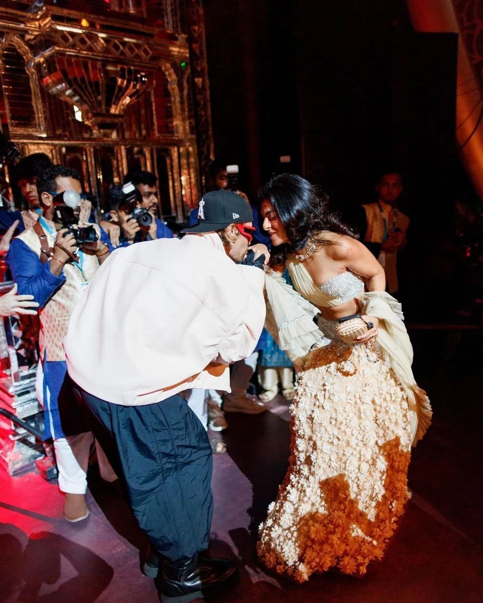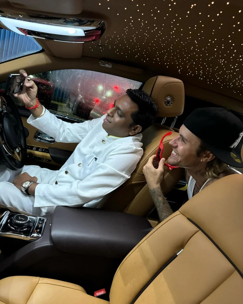 Μετά το σόου, ο Μπίμπερ πόζαρε με το ζευγάρι καθώς και τον αδερφό του γαμπρού Akash και τη σύζυγό του Shloka Mehta Ambani. Εθεάθη ακόμη με την αδερφή της Shloka, Diya Mehta, καθώς και με την αδελφή των Ambani και δίδυμη του Akash, Isha και τον σύζυγό της Anand Piramal. Ο Μπίμπερ, ντυμένος εκκεντρικά με φουσκωτό μπουφάν, φόρμα, καπέλο και γυαλιά ηλίου ερμήνευσε τα τραγούδια του Baby, Peaches, Never Let You Go, Boyfriend, All That Matters, No Brainer κ.α. Ο Μπίμερ φέρεται να ήταν ο πιο ακριβοπληρωμένος ερμηνευτής στους γαμήλιους εορτασμούς του Ambani σε μια λίστα που περιελάμβανε την Ριάνα, την Κέιτι Πέρι και την Beyoncé, που εμφανίστηκαν στον γάμο της κόρης του πατριάρχη Ambani, Isha, το 2018.