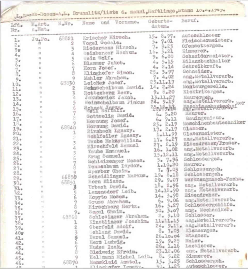 - Η λίστα, με ημερομηνία 18 Απριλίου 1945, είναι η προτελευταία λίστα από συνολικά 7, και αποτελείται από 14 σελίδες, ενώ απαριθμεί 801 ονόματα.Τα έγγραφα χρησιμοποιήθηκαν από τον Γερμανό βιομήχανο Oskar Schindler, ο οποίος έσωσε περισσότερες από 1.200 ζωές Εβραίων κατά τη διάρκεια του Ολοκαυτώματος, απασχολώντας τους στα εργοστάσιά του σε σμάλτο και πυρομαχικά.Είναι επίσης ένας από τους τρεις μόνο καταλόγους που υπάρχουν. Ο ένας στεγάζεται στο Μουσείο Ολοκαυτώματος στην Ουάσιγκτον, ενώ οι άλλοι δύο βρίσκονται στο Κέντρο Μνήμης του Ολοκαυτώματος του Ισραήλ Yad Vashem, στην Ιερουσαλήμ.Η πώληση αυτού του μεγάλης ιστορικής σημασίας αντικειμένου είναι ιδιαίτερα σημαντική, δεδομένου του ταχέως αναδυόμενου αντισημιτισμού, εν μέσω της σύγκρουσης Ισραήλ-Παλαιστίνης.