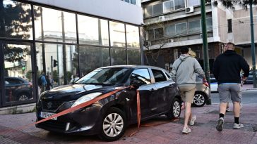 Φωτογραφία ντοκουμέντο με το σακίδιο που είχε μέσα στην βόμβα που έσκασε στα γραφεία της Hellenic Train στη λεωφόρο Συγγρού.