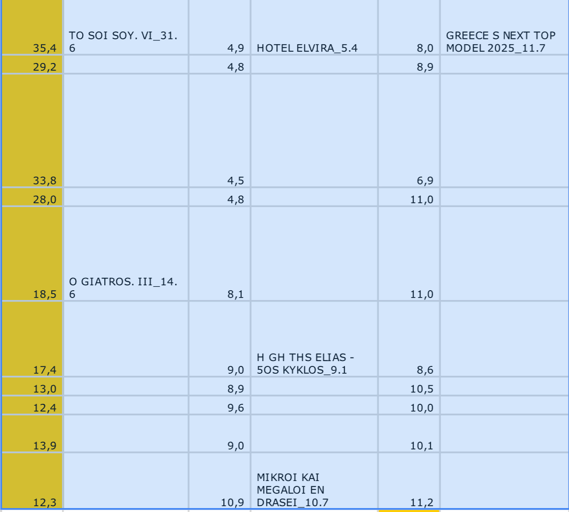 Πιο συγκεκριμένα χθές το σίριαλ του alpha έφτασε σε εντυπωσιακές αποδόσεις με τηλεθέαση άνω του 30%. Όταν μάλιστα τα δυο προϊόντα έπαιζαν απέναντι οι αποκλίσεις ήταν κολοσσιαίες με το GNTM να έχει μονοψήφια και το “Σόϊ” 35άρια.