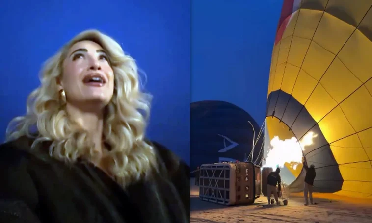 Τα βίντεο που ανέβασε δείχνουν τη συγκίνησή της τη στιγμή που το αερόστατο σηκώνεται στον ουρανό, με το τοπίο να απλώνεται από κάτω της εντυπωσιακό και σχεδόν κινηματογραφικό.