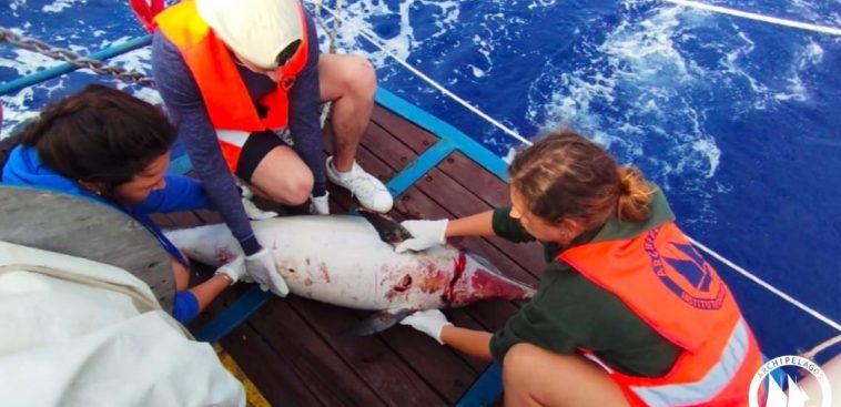 Όπως εξηγεί το «Αρχιπέλαγος»: «Όταν τα δελφίνια θανατώνονται, συχνά ανοίγεται μεγάλη οπή στην κοιλιακή τους χώρα, με στόχο να βυθιστούν ταχύτερα και να μην φτάσουν στις ακτές και υπάρξουν ίχνη των θανατώσεων».