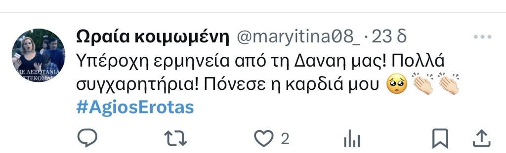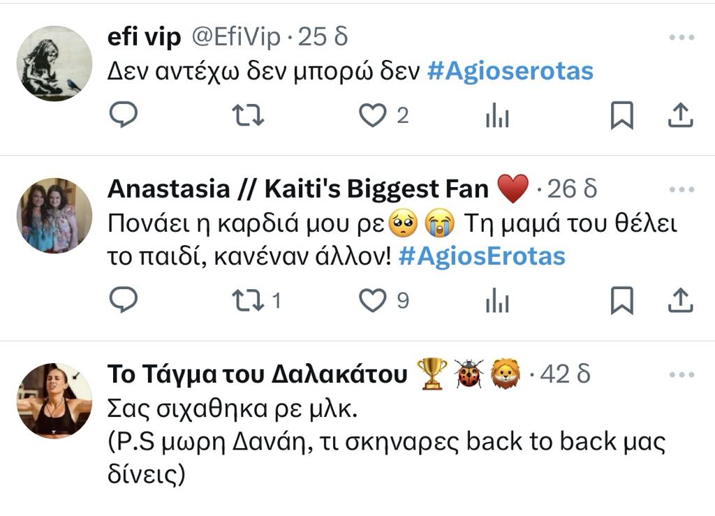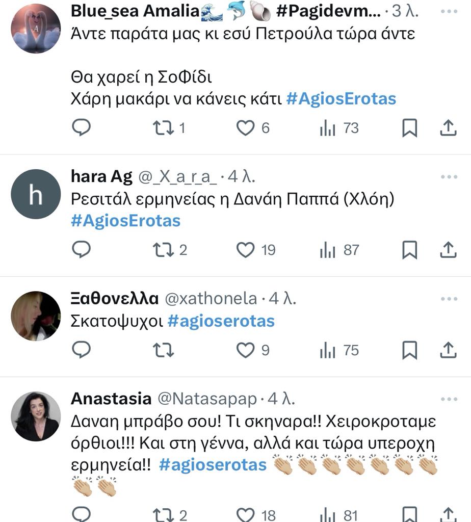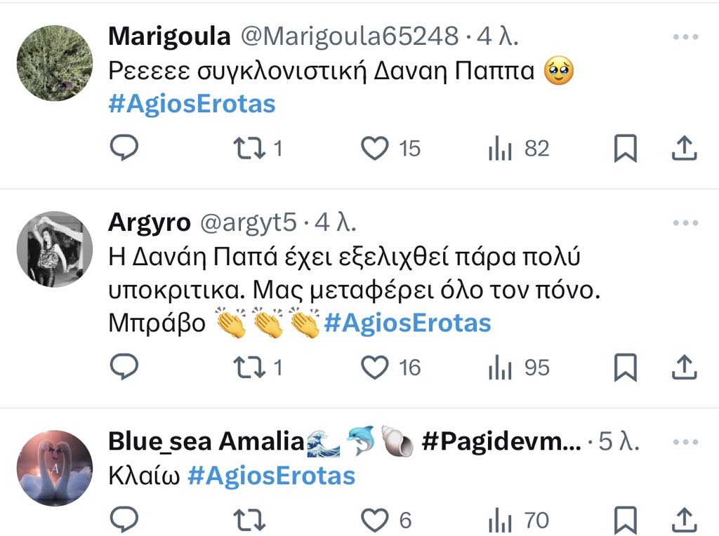 Συγκλονιστική ήταν η ερμηνεία της Δανάης Παππά στο χθεσινό επεισόδιο του “Άγιου Έρωτα”.