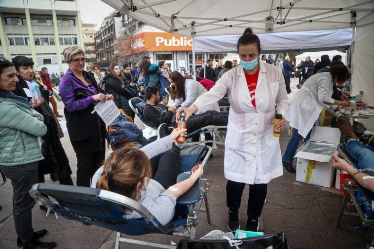 Οι ουρές για αιμοδοσία για τους τραυματίες στα Τέμπη συνεχίζονται.