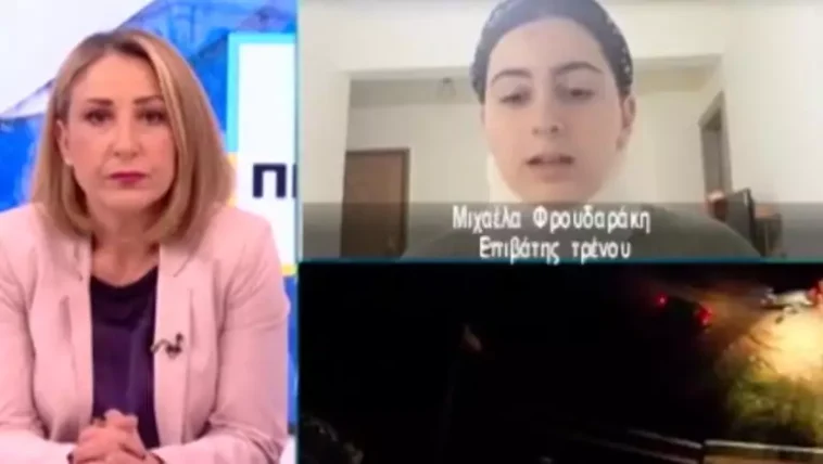 Στη θλίψη βύθισε σύσσωμη την ελληνική τραγωδία που έλαβε χώρα στα Τέμπη με τις συγκλονιστικές μαρτυρίες να μοιάζει να μην έχουν τέλος. Μια τέτοια λοιπόν φέρνει στη δημοσιότητα, μέσα από την εκπομπή Πρώτη Θέση στην Creta Tv, η Μιχαέλα Φρουδαράκη που ταξίδευε από Αθήνα προς Θεσσαλονίκη με τον μοιραίο συρμό που συγκρούστηκε με την εμπορική αμαξοστοιχία.