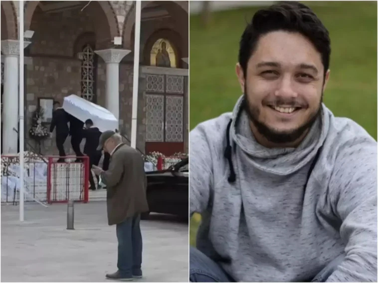 Η οικογένειά του, φίλοι και απλός κόσμος συγκεντρώθηκε στον ιερό Ναό Αγίου Ιωάννη Ρέντη και σε κλίμα οδύνης αποχαιρέτησε το αδικοχαμένο αγόρι. Ο 22χρονος είχε πάρει τη μοιραία αμαξοστοιχία για να ταξιδέψει από την Αθήνα στη Θεσσαλονίκη για να δει την οικογένειά του και την κοπέλα του.