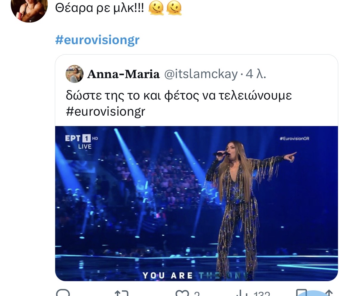- Η Ελληνίδα αοιδός ερμήνευσε το “Number one” φορώντας μια ολόσωμη φόρμα με κρυστάλλους που έμοιαζε πολύ -μα ποσό αντιγραφή- με ρούχο παλιότερα της Σήλιας Κριθαριώτη και «έριξε» το “X” που την αποθέωσε.