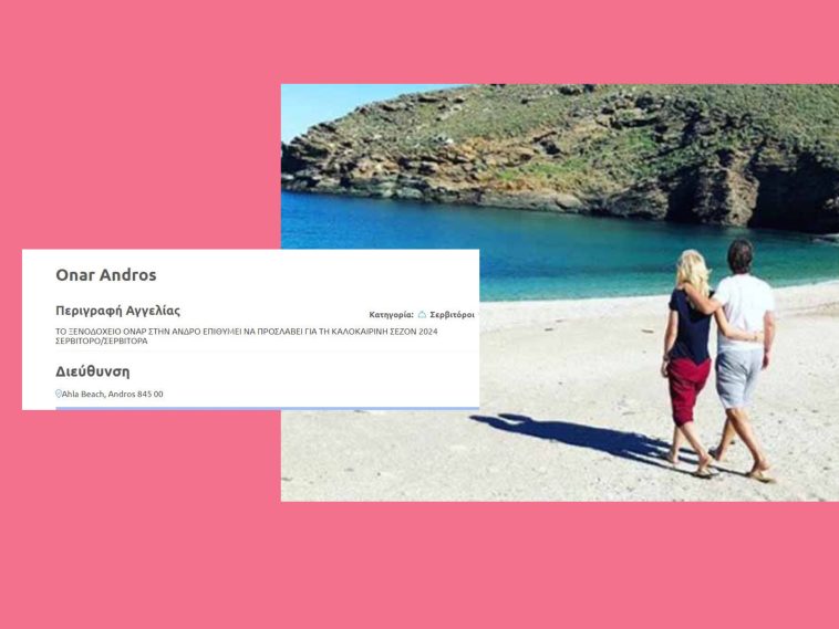 - Ναι, το ξενοδοχείο της Ελένης ζητά σερβιτόρους και αν είστε σαΐνια στο σέρβις μπορεί και να περάσετε τη σεζόν δουλεύοντας με την Μενεγάκη στη παραλία!