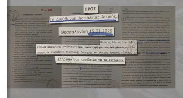 Μάλιστα, αναφέρουν πως δόθηκαν δύο εντολές κατάσχεσης των φορέων ήχου, εικόνας ή ψηφιακών δεδομένων, οι οποίες συνιστούν εκφράσεις πολιτειακής βούλησης και άσκηση κρατικής εξουσίας και σημειώνουν πως η υπηρεσία παρέλειψε να τις εκτελέσει.