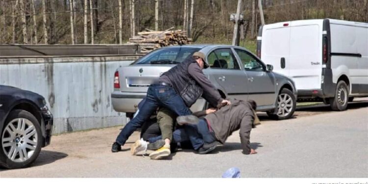 Όταν εντόπισε τον άνδρα, βγήκε από το αυτοκίνητο εκτός εαυτού και του επιτέθηκε άμεσα. Η επίθεση περιγράφεται ως άγρια και βίαιη, με γροθιές και κλωτσιές που έριξαν τον εραστή στο έδαφος, χωρίς να έχει τη δυνατότητα να αμυνθεί.