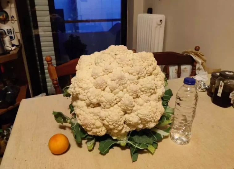 Το «κουνουπίδι – γίγας», βάρους 5,5 κιλών, προκάλεσε έκπληξη και θαυμασμό, όχι μόνο στον ίδιο τον καλλιεργητή από τα Τρίκαλα, αλλά και σε όποιον είδε το τεράστιο λαχανικό.