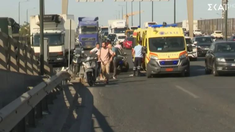 Κατά πληροφορίες που μετέδωσε ο ΣΚΑΪ, το τροχαίο σημειώθηκε όταν ο οδηγός του αυτοκινήτου έκανε τελευταία στιγμή δεξιά για να βγει στην αερογέφυρα με αποτέλεσμα να πέσουν πάνω του οι δύο μηχανές που ήταν δεξιά και αριστερά του οχήματος.