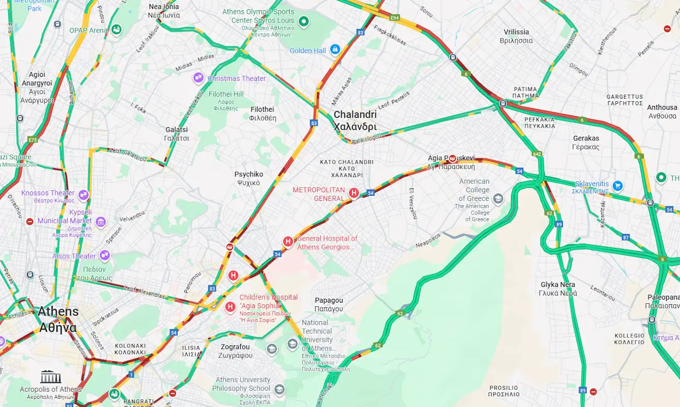 Και στους υπόλοιπους κεντρικούς δρόμους στο κέντρο της Αθήνας, καθώς και σε Κηφισό, Αττική οδό, Κηφισίας και Λεωφόρο Αθηνών, εντοπίζεται έντονο κυκλοφοριακό πρόβλημα.
