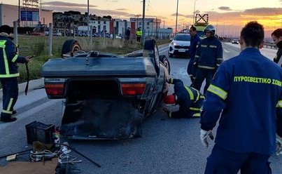 Ανατροπή Ι.Χ. αυτοκινήτου σημειώθηκε νωρίς το απόγευμα στη Θεσσαλονίκη, σε ένα ακόμα τροχαίο ατύχημα.
