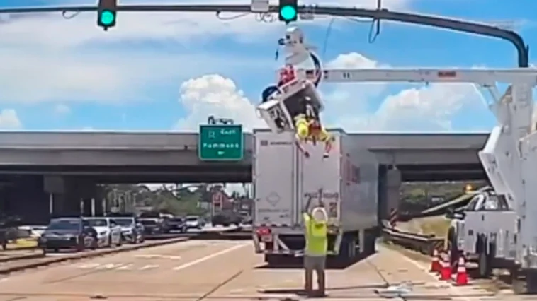 Ένα σοκαριστικό ατύχημα κατέγραψε κάμερα αυτοκινήτου σε δρόμο στη Λουϊζιάνα των ΗΠΑ όπου ένας εργάτης, την ώρα που εκτελούσε εργασίες σε φανάρι κυκλοφορίας, παραλίγο να χάσει τη ζωή του όταν διερχόμενη νταλίκα συγκρούστηκε με τον γερανό του.