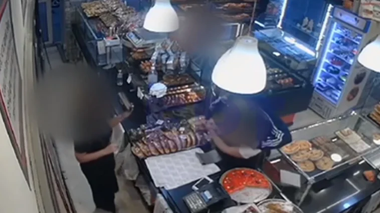 Όπως φαίνεται στα πλάνα από κάμερα ασφαλείας, ο ληστής αρπάζει τη μια από τις υπαλλήλους, της βάζει το πιστόλι στον κρόταφο και ζητά από τη δεύτερη υπάλληλο να του δώσει τα χρήματα στο ταμείο.