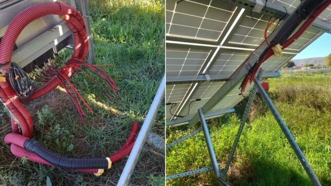 Δεν πίστευαν στα μάτια τους οι υπεύθυνοι φωτοβολταϊκού πάρκου στον Τύρναβο με τη ζημιά που αντίκρισαν σήμερα το πρωί στις εγκαταστάσεις από τις οποίες άγνωστοι προκαλώντας ζημιές δεκάδων χιλιάδων ευρώ αφαίρεσαν καλώδια για να εκμεταλλευτούν και να πωλήσουν τον χαλκό.Σύμφωνα με τις πρώτες εκτιμήσεις η ζημιά στην εγκατάσταση που ανήκει σε επιχειρηματία ο οποίος έχει εγκαταστήσει πολλά φωτοβολταϊκά πάρκα σε όλη την Ελλάδα, ανέρχεται σε 30.000 € περίπου χωρίς να υπολογιστεί και η ζημιά που έχει προκληθεί στην παραγωγή ενέργειας.