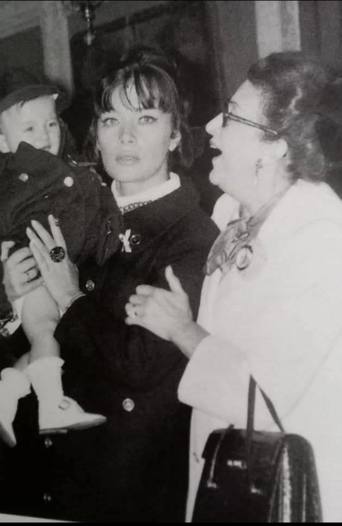 Η εικόνα αυτή, που τραβήχτηκε στις αρχές της δεκαετίας του ’70, αποτελεί ένα πολύτιμο ντοκουμέντο από την προσωπική ζωή μιας από τις πιο εμβληματικές μορφές του ελληνικού κινηματογράφου και θεάτρου. Στο στιγμιότυπο, η Τζένη Καρέζη λάμπει από ευτυχία, κρατώντας στην αγκαλιά της το νεοφώτιστο παιδί της, ενώ στο πλάι της βρίσκεται η νονά του μιρκού, Κατίνα Παξινού.Η βάπτιση του Κωνσταντίνου έγινε σε κλειστό κύκλο, με την παρουσία μόνο στενών συγγενών και αγαπημένων φίλων του ζευγαριού. Παρά τη μεγάλη δημοσιότητα που είχαν και οι δύο γονείς, η προσωπική τους ζωή διατηρήθηκε πάντα σε διακριτικά πλαίσια – και αυτή η φωτογραφία είναι από τις λίγες που έχουν δημοσιοποιηθεί.