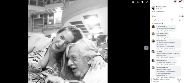 Τη θλιβερή είδηση ανακοίνωσε η ίδια η Ερασμία Μάνου μέσα από ανάρτησή της στο facebook: