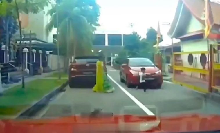 Στην συγκεκριμένη περίπτωση που βλέπουμε από κάμερα αυτοκινήτου, η μητέρα δεν έχει παρατηρήσει ότι ο μικρός γιος της έχει ξεφύγει από την προσοχή της και κινείται προς τον δρόμο.