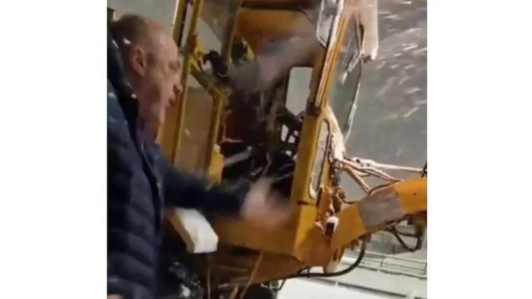 Στη συνέχεια βγαίνει από το αμάξι και φωνάζει στον οδηγό του εκχιονιστικού λέγοντας: «ρε θα με τρελάνεις, λίγο μυαλό θέλει».
