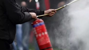Ο άνδρας κρατούσε στο χέρι και επεξεργαζόταν τον πυροσβεστήρα, ο οποίος όμως έσκασε ξαφνικά στα χέρια του και τον πέταξε στη θάλασσα, χωρίς ευτυχώς να τραυματιστεί.