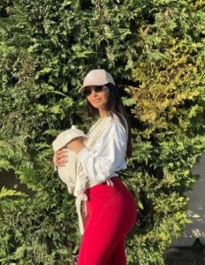Με αθλητική εμφάνιση, κολάν και καπέλο απολαμβάνει την βόλτα της η Σοφία Αλατζά αγκαλιά με την νεογέννητη κόρη της που έφερε στον κόσμο τον Ιανουάριο.