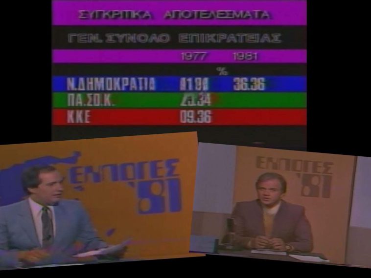 Το σύστημα κράσαρε πολύ νωρίς και η επανεκλογή Καραμανλή οριστικοποιήθηκε τα ξημερώματα ενώ η σταυροδοσία την επόμενη ημέρα.Η πρώτη φορά που έχει επιτυχημένη χρήση των ηλεκτρονικών υπολογιστών ήταν το 1981. Τα δύο κανάλια ΕΡΤ και ΥΕΝΕΔ σε Εθνικό δίκτυο μετέδωσαν τα αποτελέσματα με κεντρικό παρουσιαστή τον Τέρενς Κουίκ που παρουσίασε τότε το κεντρικό δελτίο της ΕΡΤ.