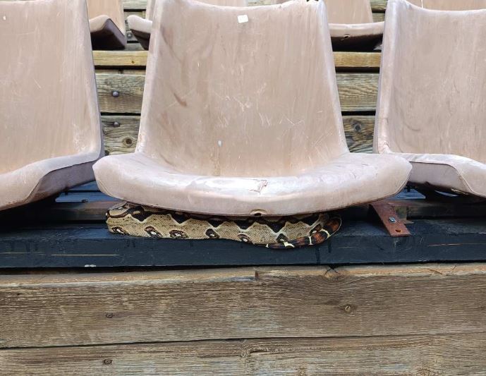 Ένας βόας σφικτήρας «έκοβε βόλτες» στο θέατρο Δώρας Στράτου στου Φιλοπάππου, και «κούρνιασε» κάτω από ένα κάθισμα μέχρι να τον εντοπίσουν τυχαία περαστικοί.