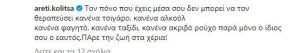 Η νικήτρια του «My Style Rocks με βλέμμα που σκοτώνει, στέλνει ηχηρό μήνυμα ζωής «Τον πόνο που έχεις μέσα σου δεν μπορεί να τον θεραπεύσει κανένα τσιγάρο, κανένα αλκοόλ κανένα φαγητό, κανένα ταξίδι, κανένα ακριβό ρούχο παρά μόνο ο ίδιος σου ο εαυτός. Πάρε την ζωή στα χέρια!» γράφει η Αρετή Κολίτσα.