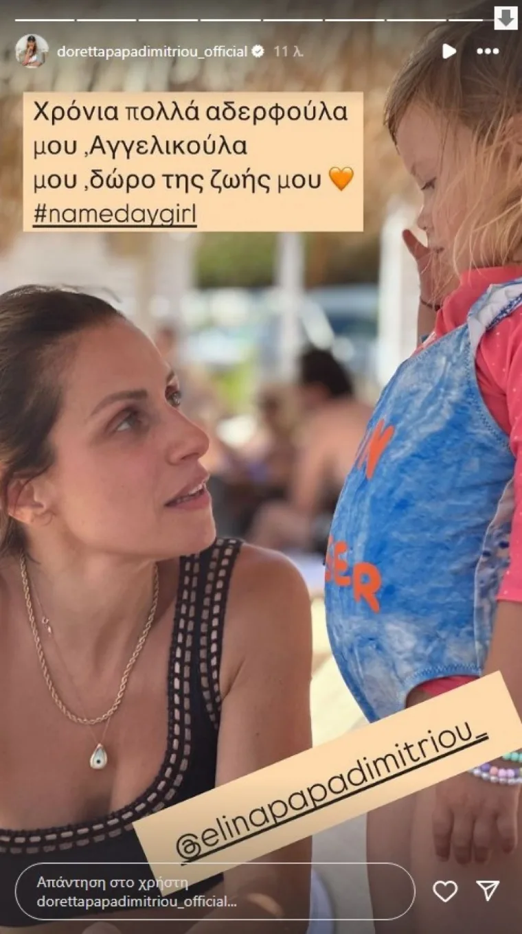 Η αδερφή της, Ελίνα γιορτάζει και πόσταρε μία τρυφερή φωτογραφία της αδερφής της με τον γιο της, και έγραψε: “Χρόνια Πολλά αδελφούλα μου, Αγγελικούλα μου, δώρο της ζωής μου. #namedaygirl @elinapapadimitriou”.