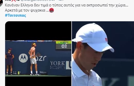 «Σε έξαλλη κατάσταση ο Τσιτσιπάς απαίτησε να βγει ο πατέρας του από το στάδιο για να συνεχίσει να αγωνίζεται φωνάζοντάς του : «Γα@ήσου, θα γαμ@θείς, να πας να γαμ@θείς. Να φύγεις από το στάδιο τώρα! Αν δεν φύγεις, δεν παίζω! Βγες έξω από το στάδιο αυτή τη στιγμή!». «Ήθος» αθλητή. Ντράπηκε και η ντροπή»