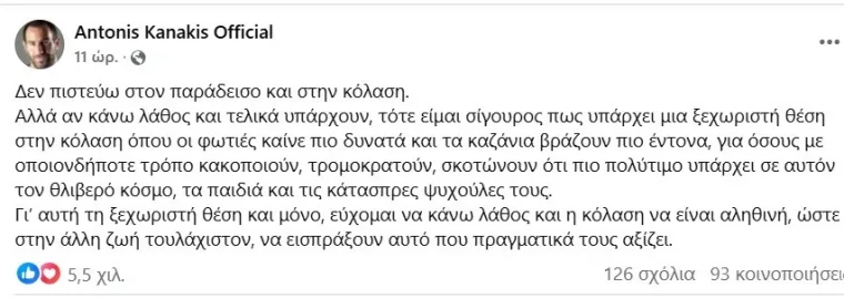 Ο Αντώνης Κανάκης έκανε μία οργισμένη ανάρτηση στα social media σχετικά με τη βάναυση κακοποίηση που δέχθηκε ο τρίχρονος Άγγελος και έδωσε σκληρή μάχη για να κρατηθεί στη ζωή, αλλά δεν τα κατάφερε.
