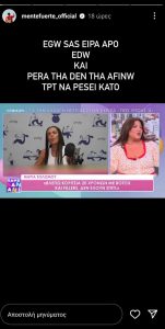 - Τα όσα είπε η παρουσιάστρια προκάλεσαν ωστόσο την έντονη αντίδραση του Mente Fuerte, ο οποίος ξέσπασε εναντίον της, μέσω αναρτήσεων του στα instastories.