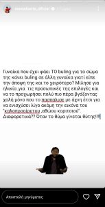 - Σε άλλη του ανάρτηση ο Mente Fuerte πρόσθεσε: «Γυναίκα που έχει φάει ΤΟ bullying για το σώμα της, κάνει bullying σε άλλη γυναίκα γιατί είπε την άποψή της. Και το χειρότερο; Μίλησε για ηλικία, για τις προσωπικές της επιλογές και να το προχωρήσει πολύ πιο πέρα, βγάζοντας χολή. Μόνο που το πασπάλισε με άχνη, έτσι για να ενισχύσει λίγο ακόμη την εικόνα του καλοπροαίρετου, αθώου κοριτσιού. Διαφορετικά; Όταν το θύμα γίνεται θύτης».