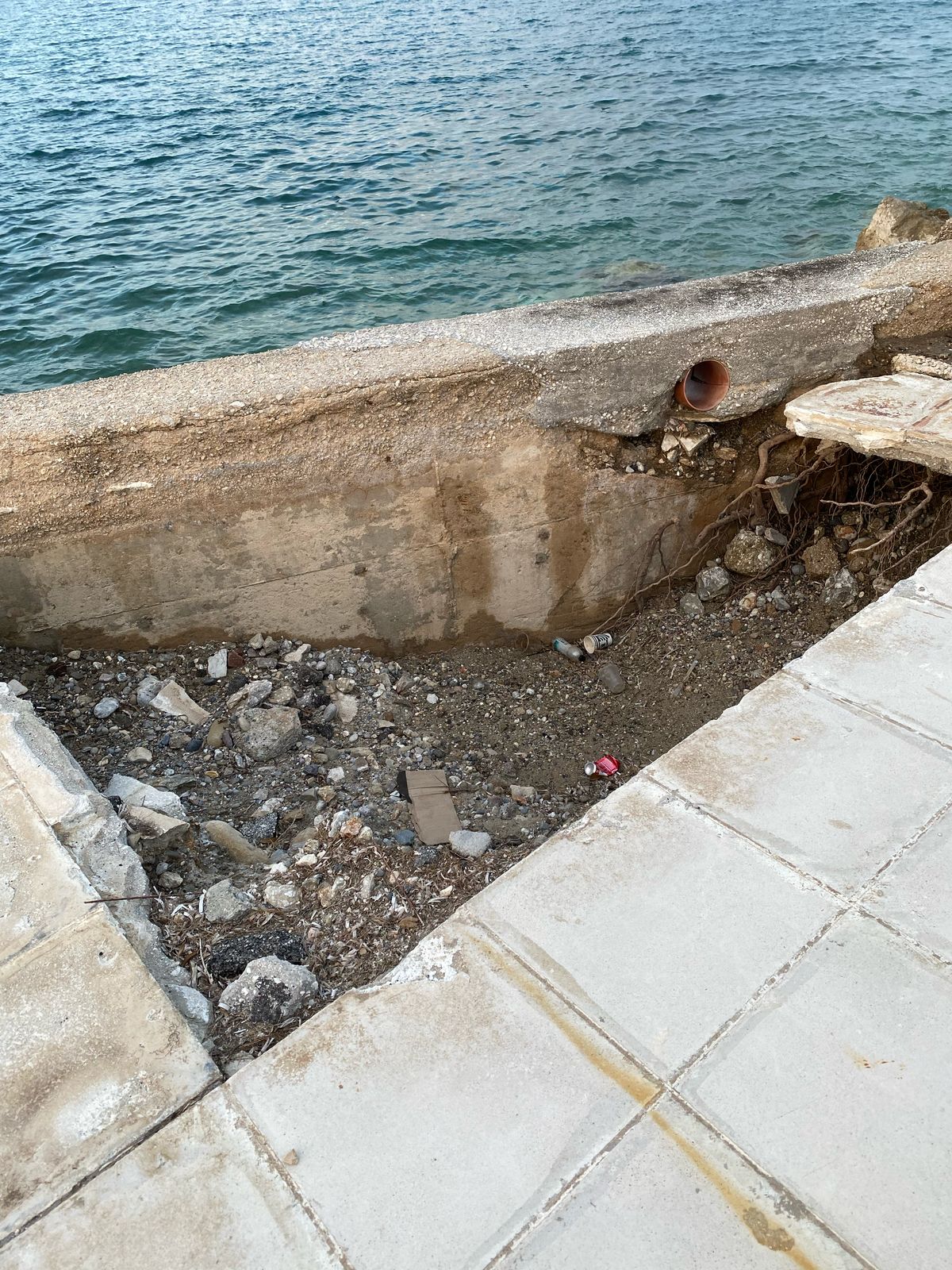 - Μέχρι πρότινος η κατάσταση ήταν απλώς αντιαισθητική, ωστόσο πλέον η συγκεκριμένη συνθήκη είναι άκρως επικίνδυνη για τους πολίτες καθώς σε άλλο σημείο η διάβρωση έχει φτάσει μέχρι το οδικό δίκτυο.