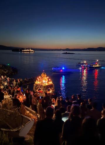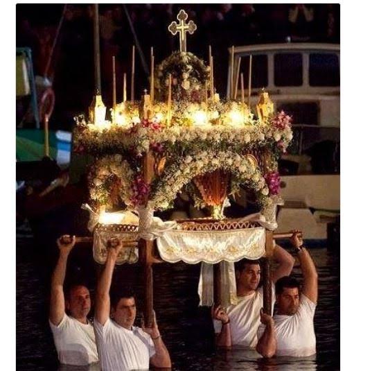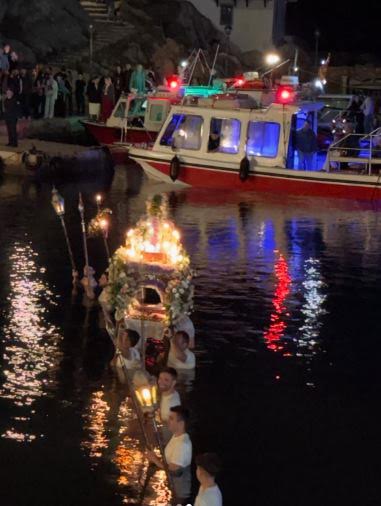 Ένα από τα ομορφότερα έθιμα του νησιού είναι η περιφορά του Επιταφίου μέσα στη θάλασσα, το βράδυ της Μεγάλης Παρασκευής στα Καμίνια.