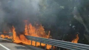 Η φωτιά ξέσπασε στη Λάρισα δίπλα στην εθνική οδό Αθηνών – Θεσσαλονίκης, με αποτέλεσμα να σπεύσουν στο σημείο 8 οχήματα της Πυροσβεστικής με 16 άντρες αλλά και η Τροχαία.