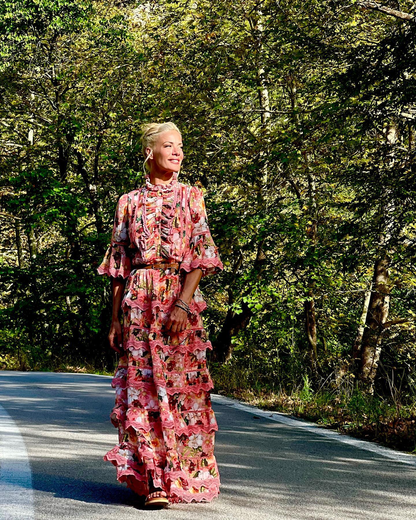 «Επιστροφή στις ρίζες των παππούδων μου! Αυτό το Σαββατοκύριακο ήταν γεμάτο αγάπη, γέλιο, συγκίνηση, χορό, φύση και οικογένεια! Αφορμή η βάπτιση του ανιψιού μου, που έγινε στη μονή της Παναγίας του Προυσού. Ο μικρός Κωνσταντίνος μας ένωσε και μετά από πολλά χρόνια απόλαυσα ξανά διακοπές με την οικογένεια μου και με αγαπημένους οικογενειακούς φίλους!» έγραψε η παρουσιάστρια στο Instagram και ανέβασε φωτογραφίες από τη βάφτιση.