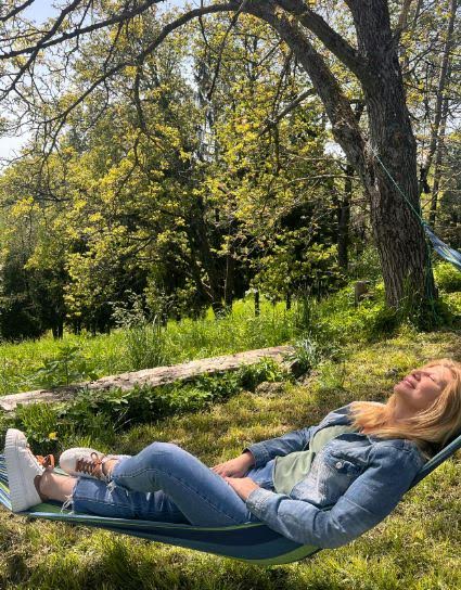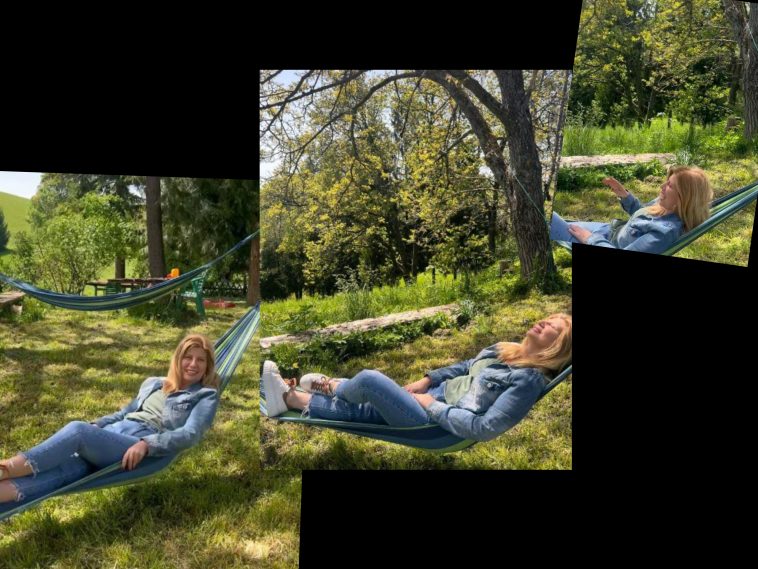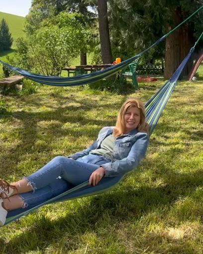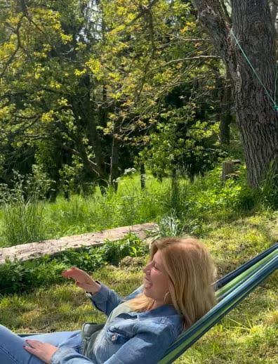 Πολύ πράσινο, μια αιώρα και η παρουσιάστρια σε χαλαρό mood στέλνει τις ευχές της.