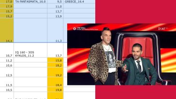 Αυτά τα δυο διψήφια προγράμματα στο Prime Time ζορίζουν πολύ το “The Voice” τις Κυριακές ποτ βγαίνει μεν πρώτο στον ανταγωνισμό αλλά με “πληγές”.